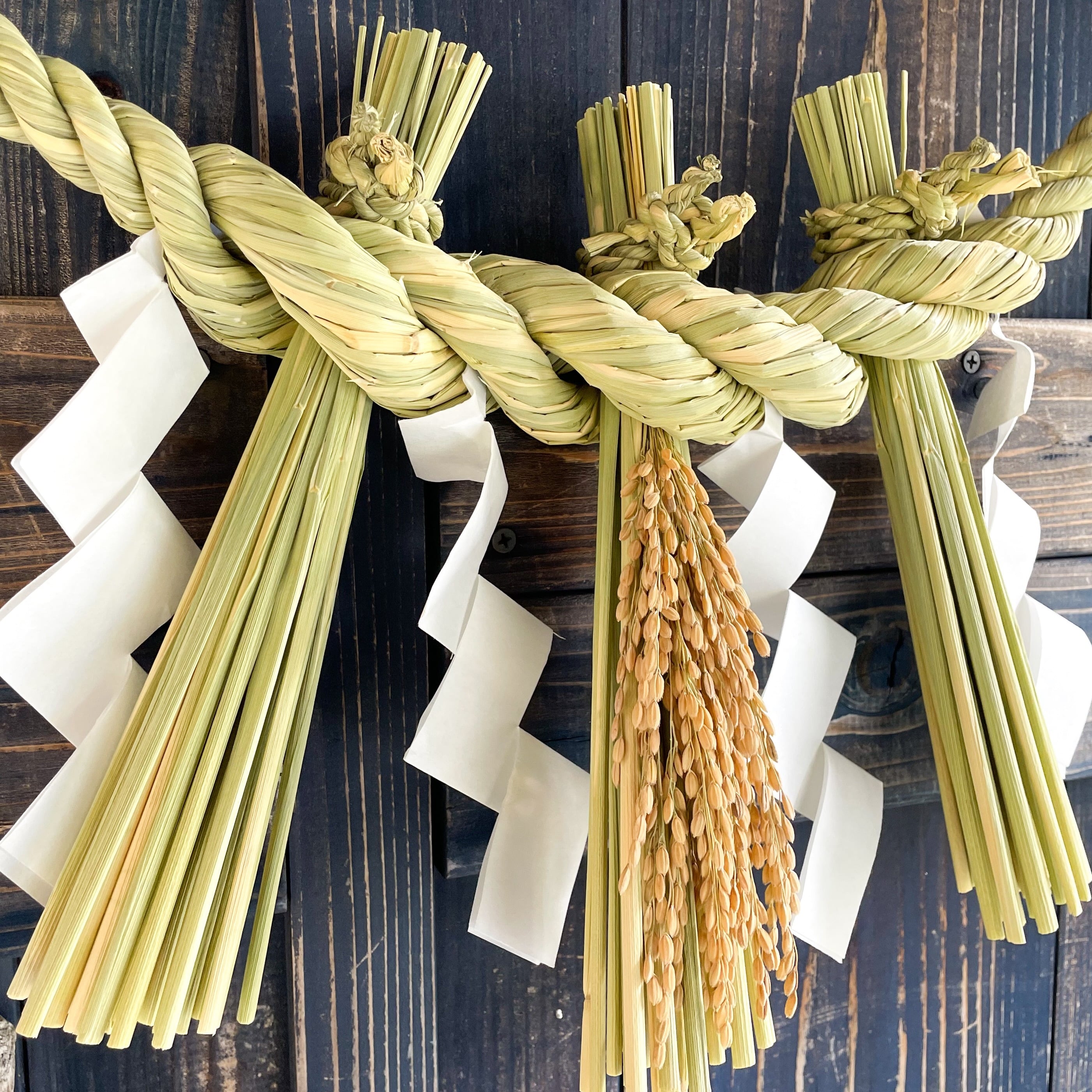しめ飾りは、お正月に家々を訪れ新たな一年の実りと幸をもたらす年神様を迎え入れるための飾りです。今年取れた稲の藁で作られ、正月事始と言われる12月13日から年末までに飾ると良いとされています。ただし、29日は「九松」と言われ「苦待つ」や「二重苦」の意味もあり、31日も「葬儀を連想させる一夜飾り」となり縁起が悪いとされています。