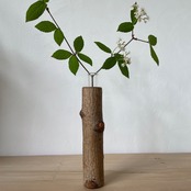 いちょうの枝を使って作った一輪挿しです。卓上でも壁掛けとしても使えるタイプ。