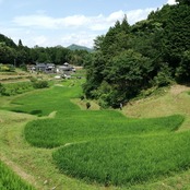 小さな田んぼが段々に連なっている棚田で大きな農業機械が入らず手作業が多くなるのですが、仲間たちと協力して田植えや草抜きなどをして大事に育てています。刈り取った稲は昔ながらのハゼ干し(稲を竿にかけ天日で干し)をしてからお米を収穫しています。